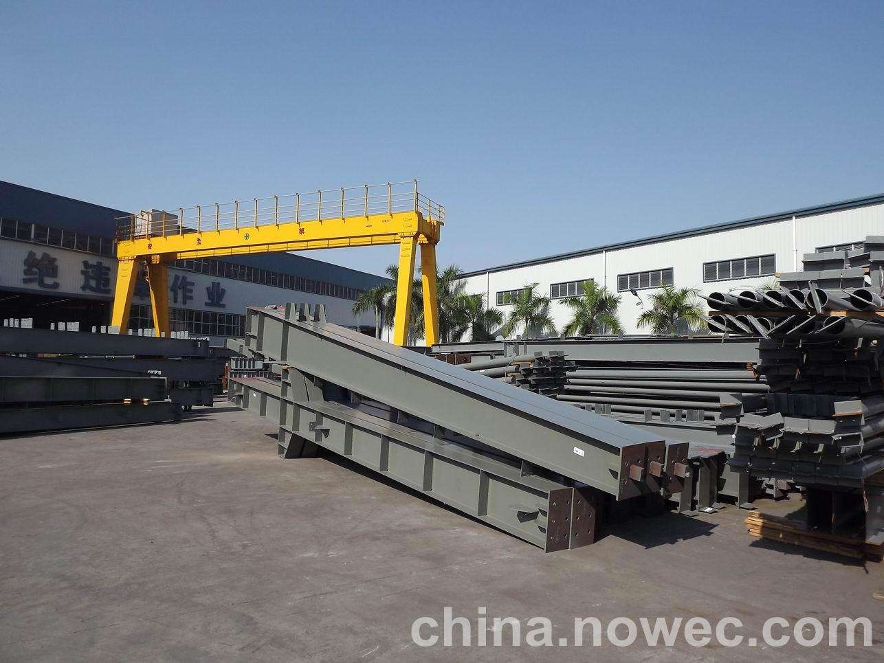 条状单元一般沿长跨方向分割,其宽度约为1~3个网格,其长度为l2或l2/2(l2为短跨跨距)。块状单元一般沿阿克苏网架平面纵横向分割成矩形或正方形单元。每个单元的重量以现有起重机能胜任为准。条(块)与条(块)之间可以直接拼装,也可空一网格在高空拼装。由于条(块)状单元是在地面拼装,因而高空作业量较高空散装法大为减少,拼装支架也减少很多,又能充分利用现有起重设备,故较经济。这种安装方法适用于分割后网架的钢度和受力状况改变较小的各类中小型网架,如两向正交正放四角锥、正放抽空四角锥等网架。
